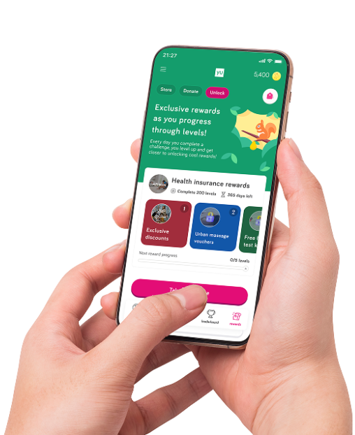 3,8 Available on Bupa Select Health Insurance through YuLife only, Not every product or service will be available to claim each policy year. Employees unlock additional products and services through engagement with the YuLife app over time, equivalent to a maximum of £700. This is in addition to normal YuCoin rewards for activities including mindfulness, walking, and cycling. The specific products and services may be subject to change, and are provided by YuLife partners outside of the scope of Bupa Select Health Insurance