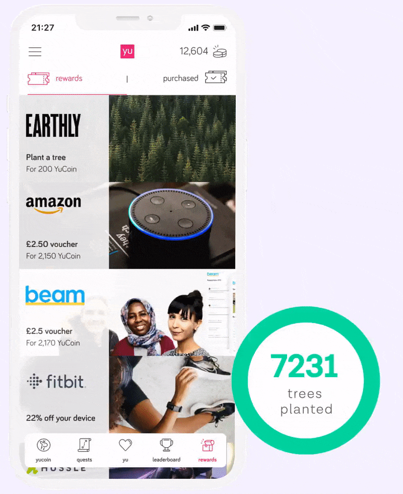 Rewards: Exchange YuCoin for vouchers and points with our partners (eg. Amazon, Tesco, Nike)