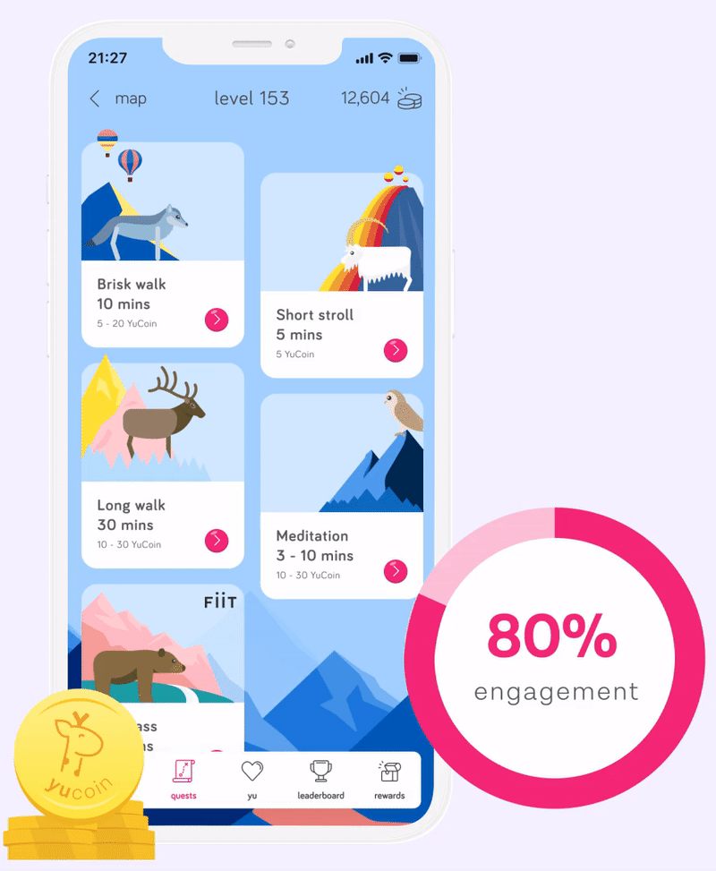 Wellness Challenges: Employees earn YuCoin for steps, workplace mindfulness, cycling challenges
