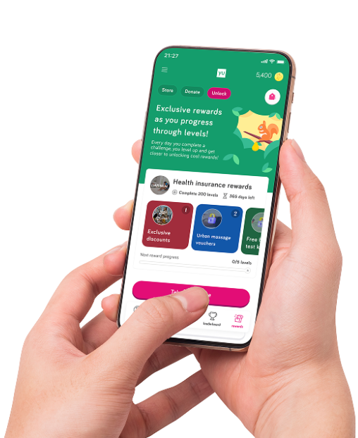 3,8 Available on Bupa Select Health Insurance through YuLife only, Not every product or service will be available to claim each policy year. Employees unlock additional products and services through engagement with the YuLife app over time, equivalent to a maximum of £700. This is in addition to normal YuCoin rewards for activities including mindfulness, walking, and cycling. The specific products and services may be subject to change, and are provided by YuLife partners outside of the scope of Bupa Select Health Insurance